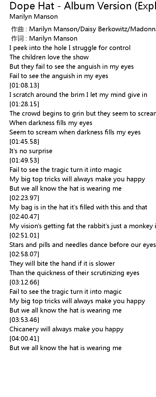 | [00:01.000] | zuo ci : Marilyn Manson |
