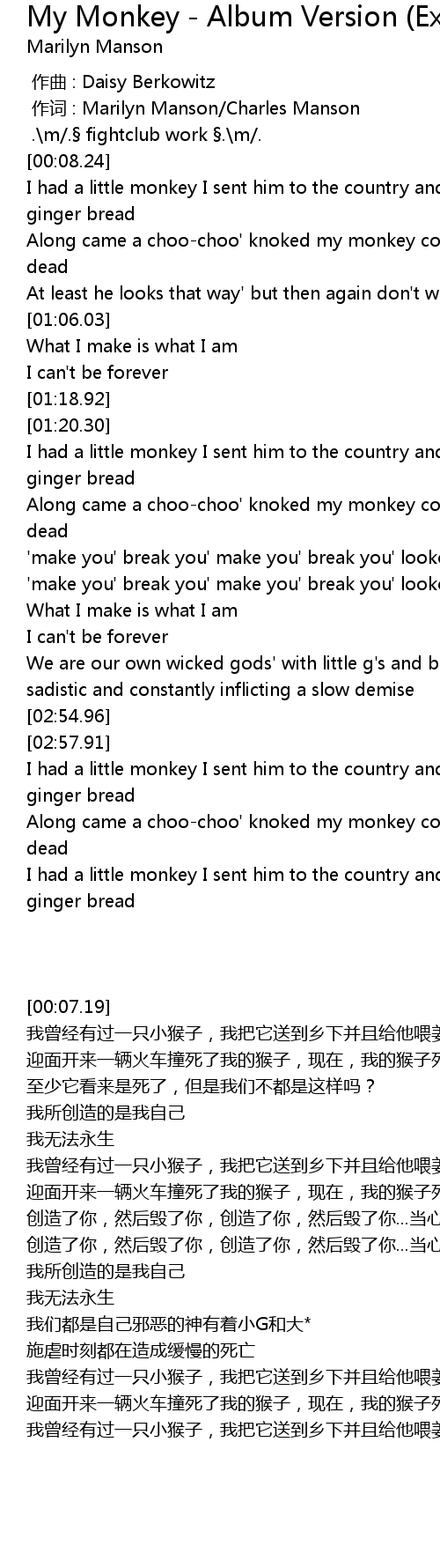 | [00:01.00] | zuò cí : Marilyn Manson Charles Manson |
