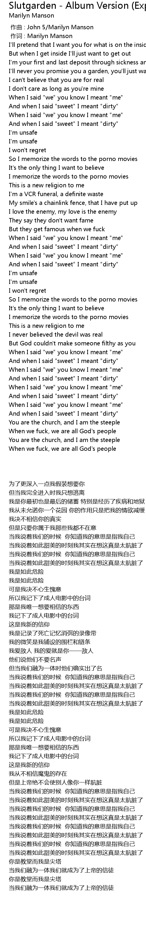 | [00:01.00] | zuò cí : Marilyn Manson |