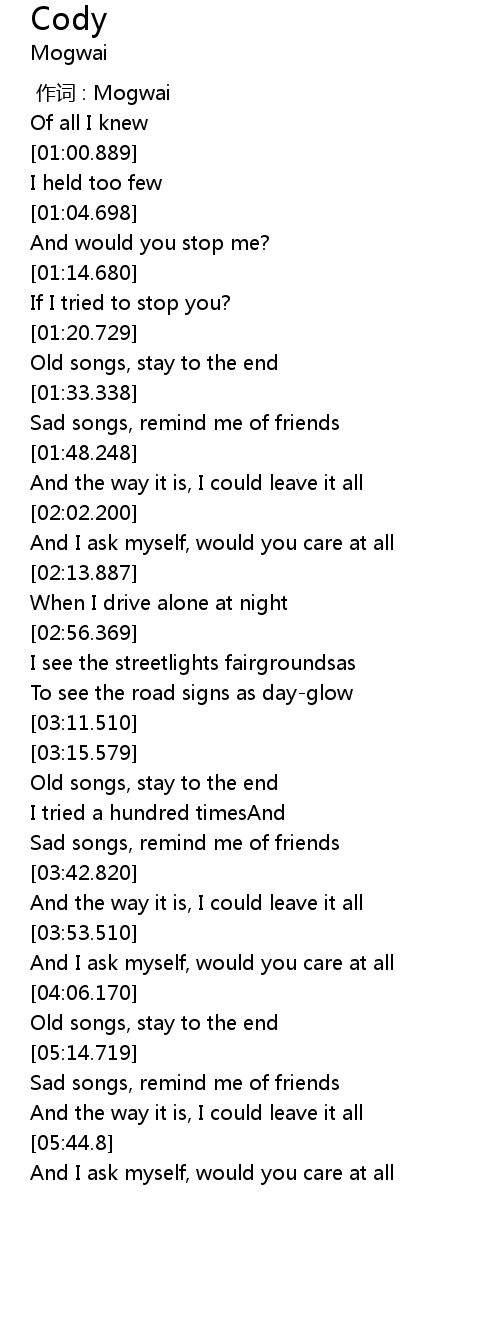 | [01:26.198] | Old songs, stay to the end |