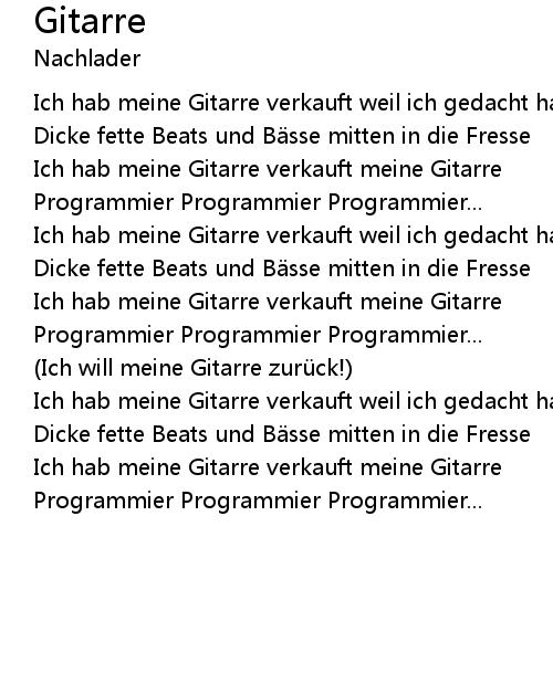 | Ich hab meine Gitarre verkauft weil ich gedacht hab dass ich lieber programmiere | |