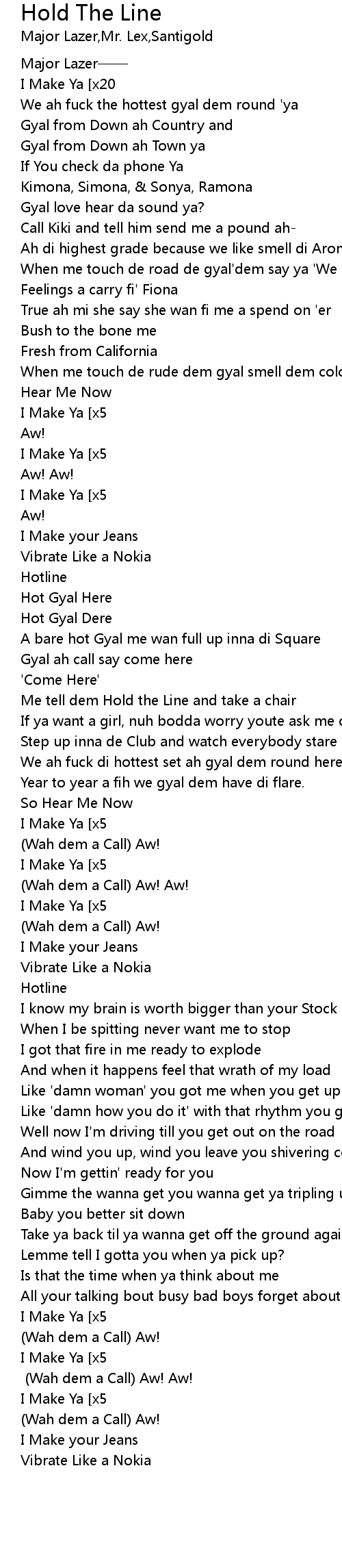 | [02:00.50] | Me tell dem Hold the Line and take a chair |