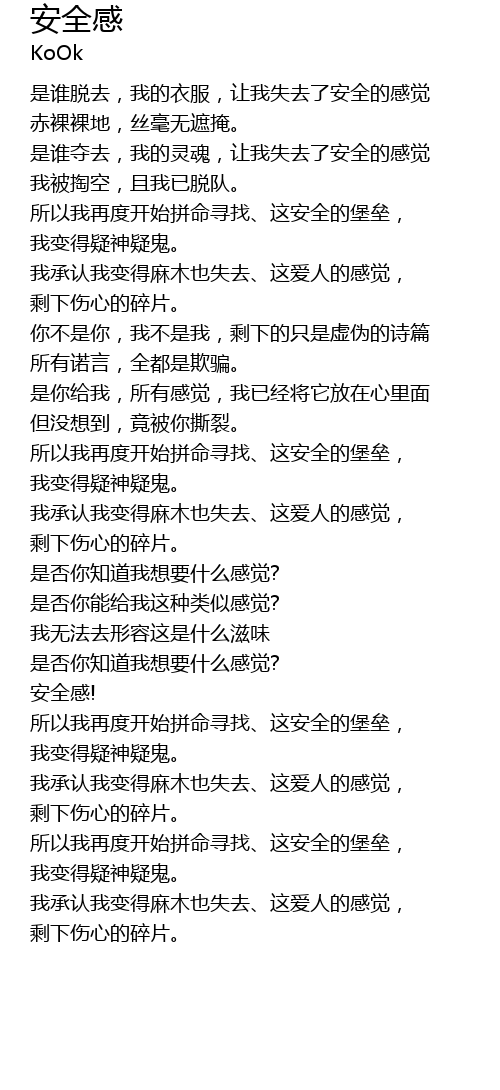 | [00:07.95] | 是谁脱去,我的衣服,让我失去了安全的感觉 |