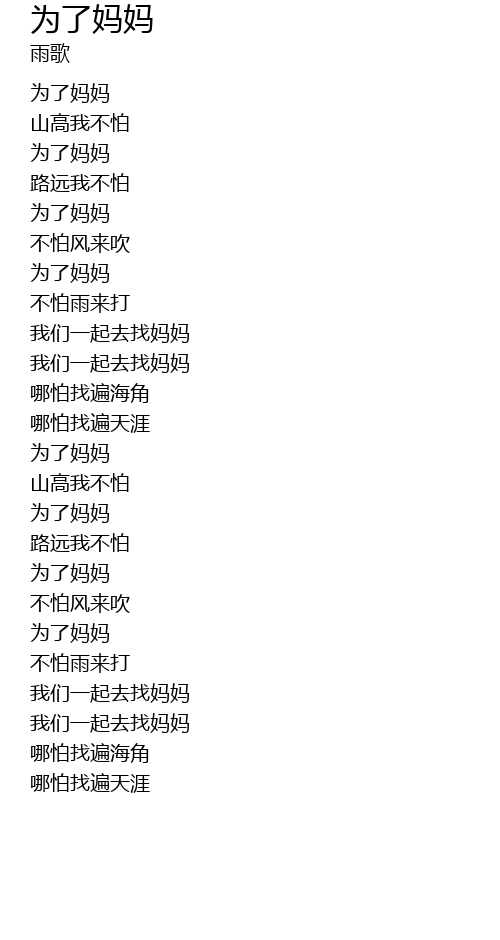 | [01:43.298] | wǒ men yì qǐ qù zhǎo mā mā |