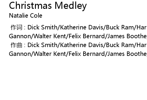| [00:00.000] | 作曲 : Dick Smith/Katherine Davis/Buck Ram/Harry Simeone/Kim Gannon/Walter Kent/Felix Bernard/James Boothe/Joseph Beal/Henry Onorati |