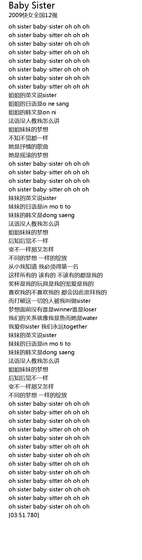 | [03:39.420] | oh sister babysister oh oh oh |