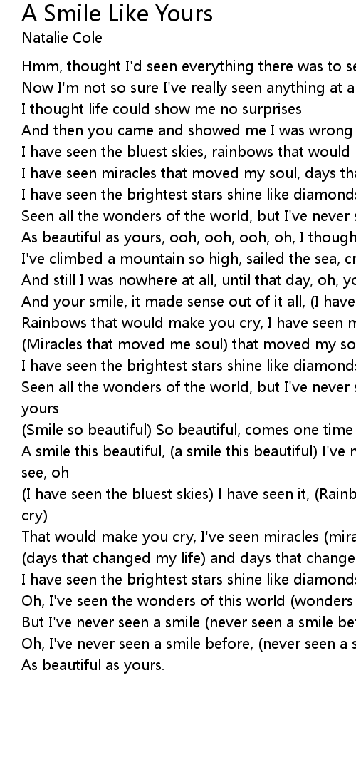 Seen all the wonders of the world, but I've never seen a smile as beautiful as yours |