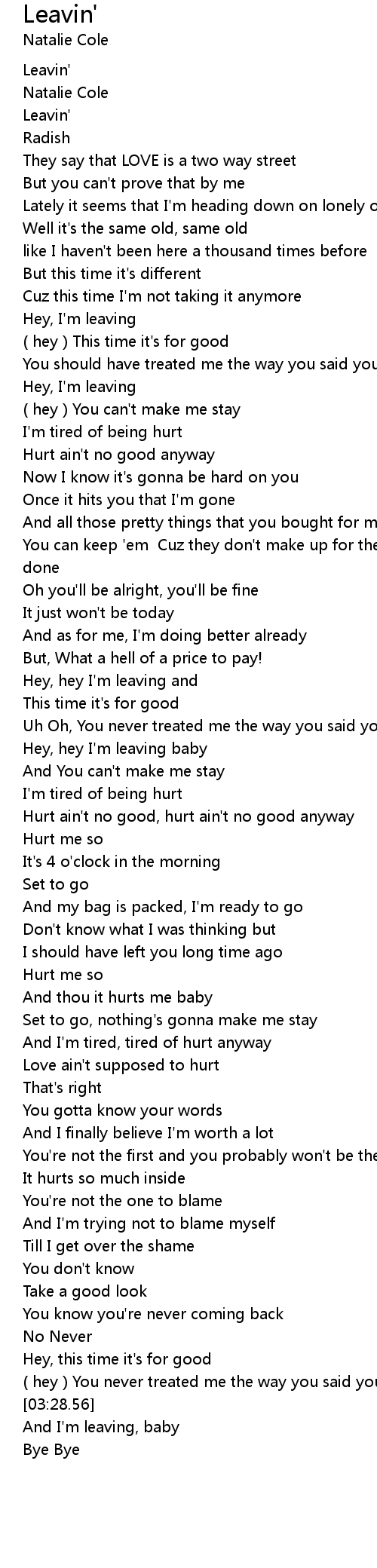Hey, hey I'm leaving and |