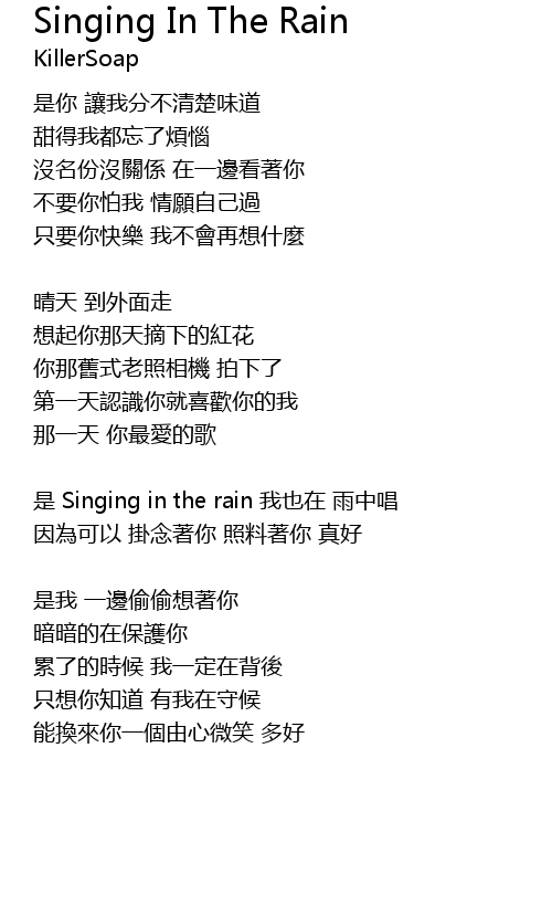 | 是 Singing in the rain 我也在 雨中唱 | |