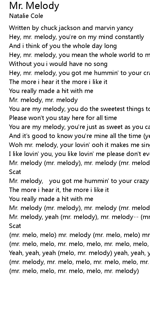 | Mr. melody, yeah mr. melody, mr. melody mr. melody | |