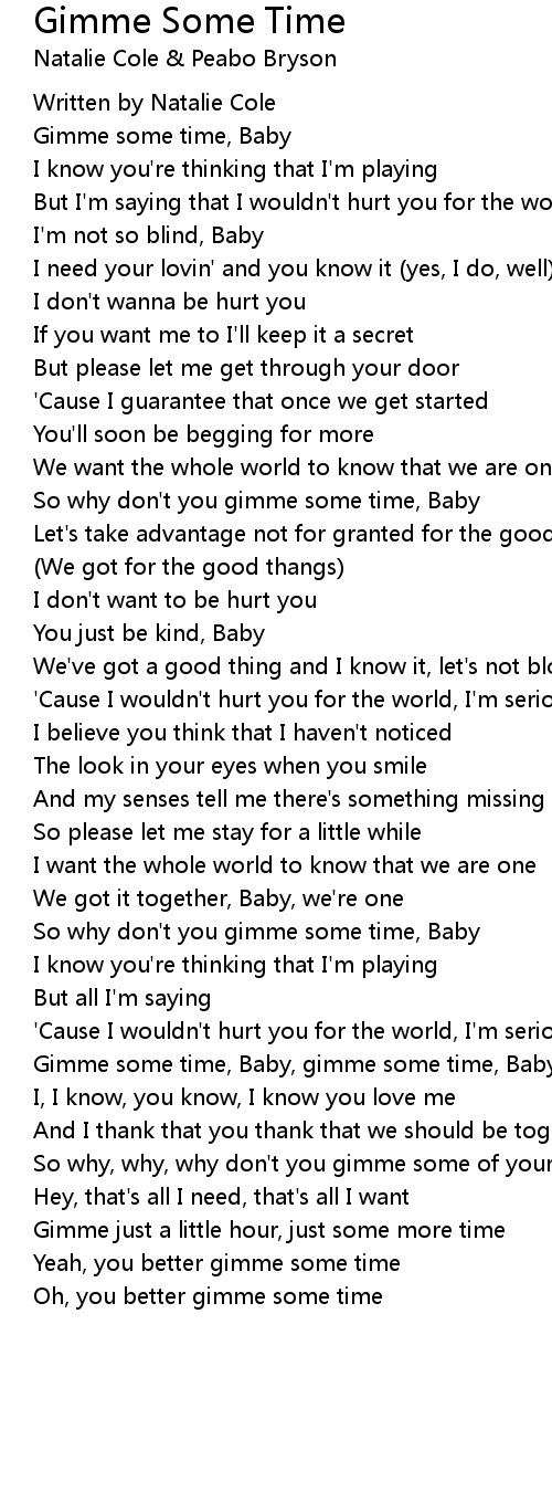 Gimme some time, Baby, gimme some time, Baby |