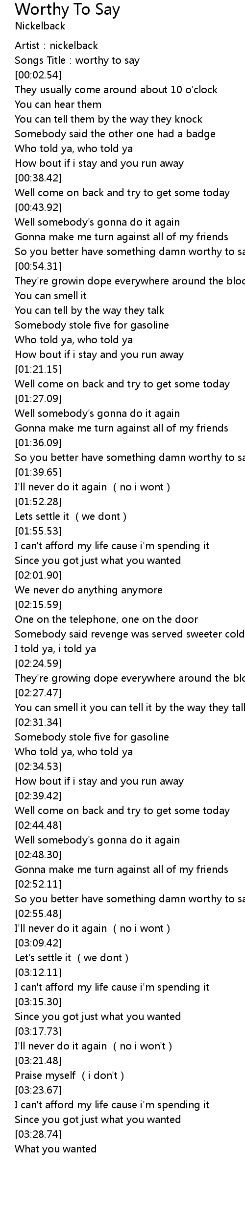 | [00:52.06] | So you better have something damn worthy to say |