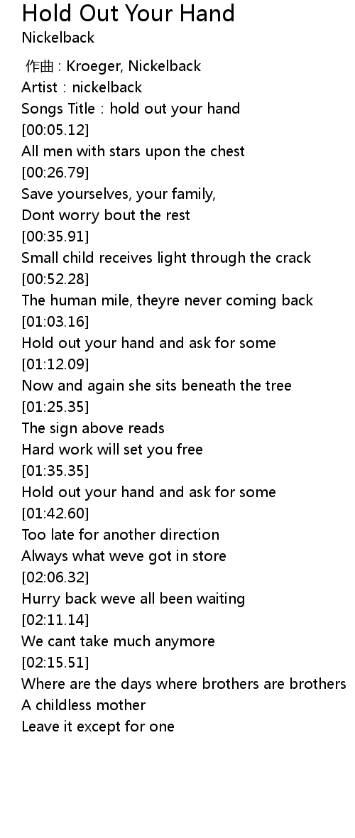 | [00:00.00] | 作曲 : Kroeger, Nickelback |