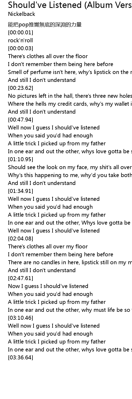 | [00:48.32] | Well now I guess I should've listened |