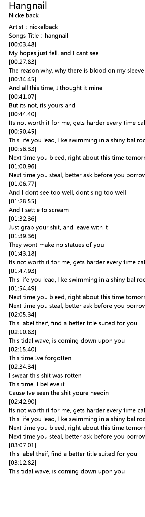 | [00:00.66] | Artist: nickelback |