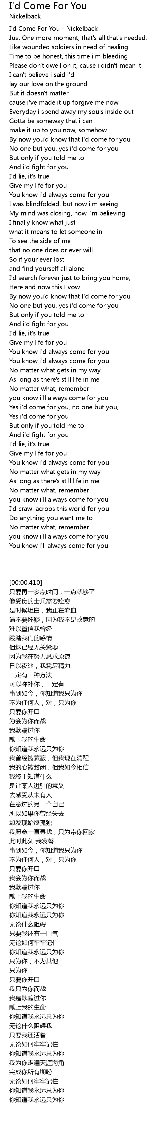 I'd Come For You - Nickelback |