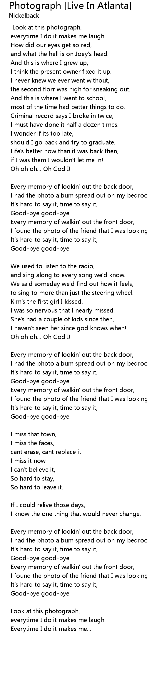 Every memory of walkin' out the front door, |