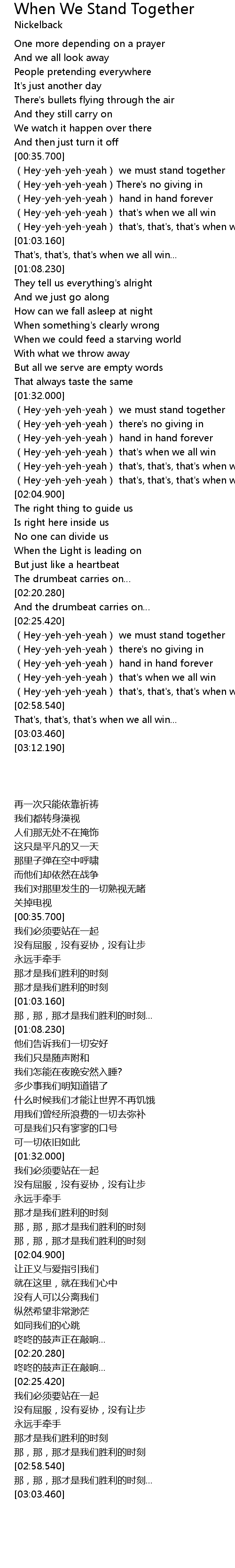 | [00:36.800] | (Hey-yeh-yeh-yeah) we must stand together |