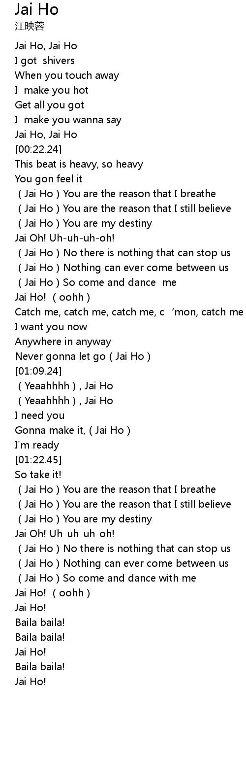 | [00:03.02] | Jai Ho, Jai Ho |