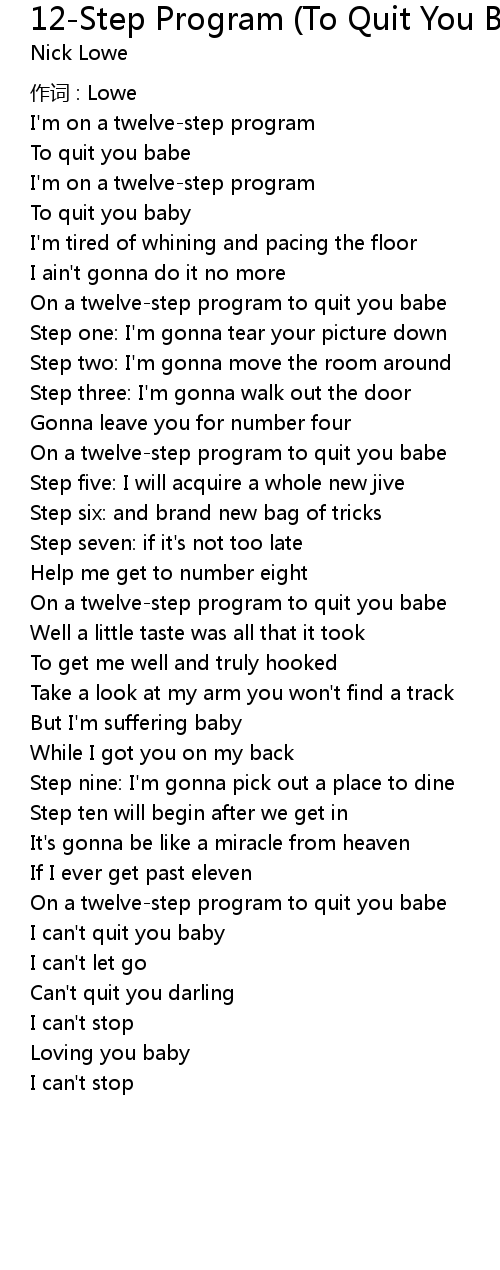 | On a twelve-step program to quit you babe | |