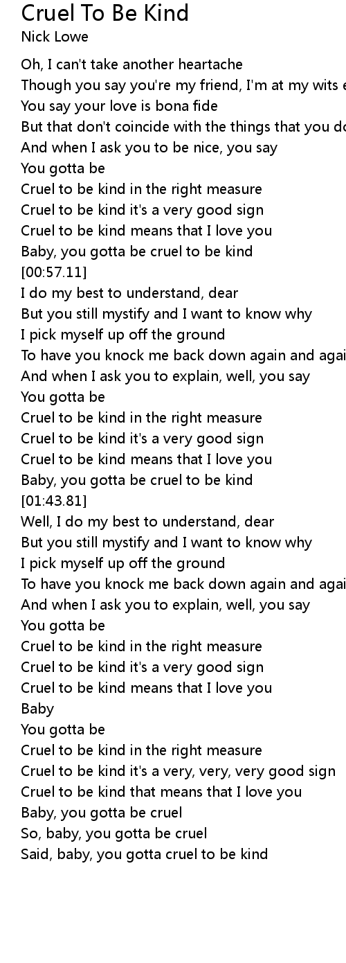 Cruel to be kind that means that I love you |