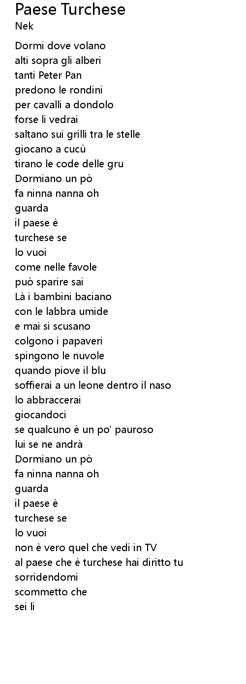 | al paese che e turchese hai diritto tu | |