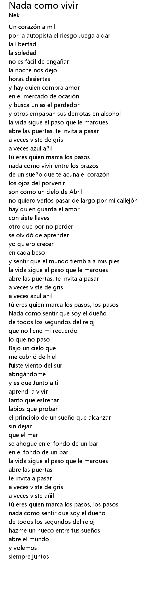 | nada como vivir entre los brazos | |