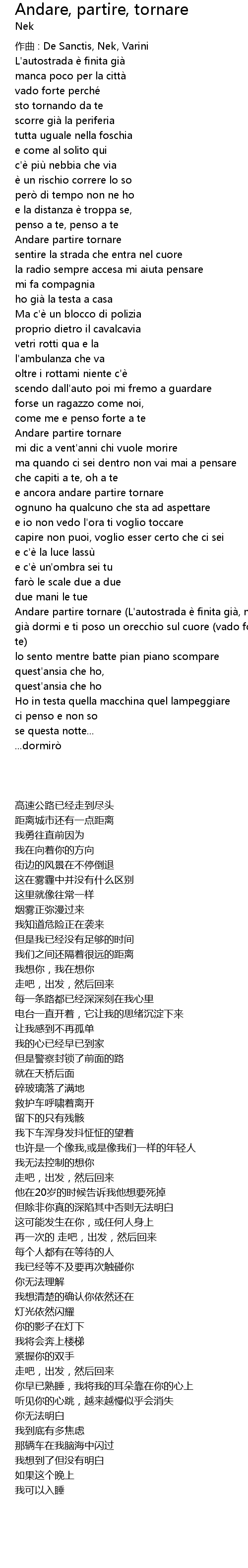 | zuò qǔ : De Sanctis, Nek, Varini | |