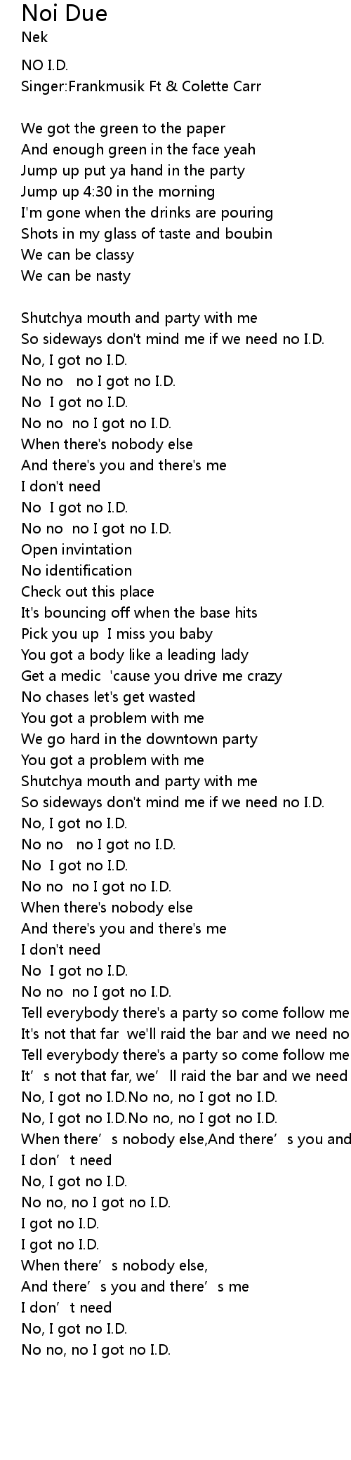 | No no no I got no I. D. | |