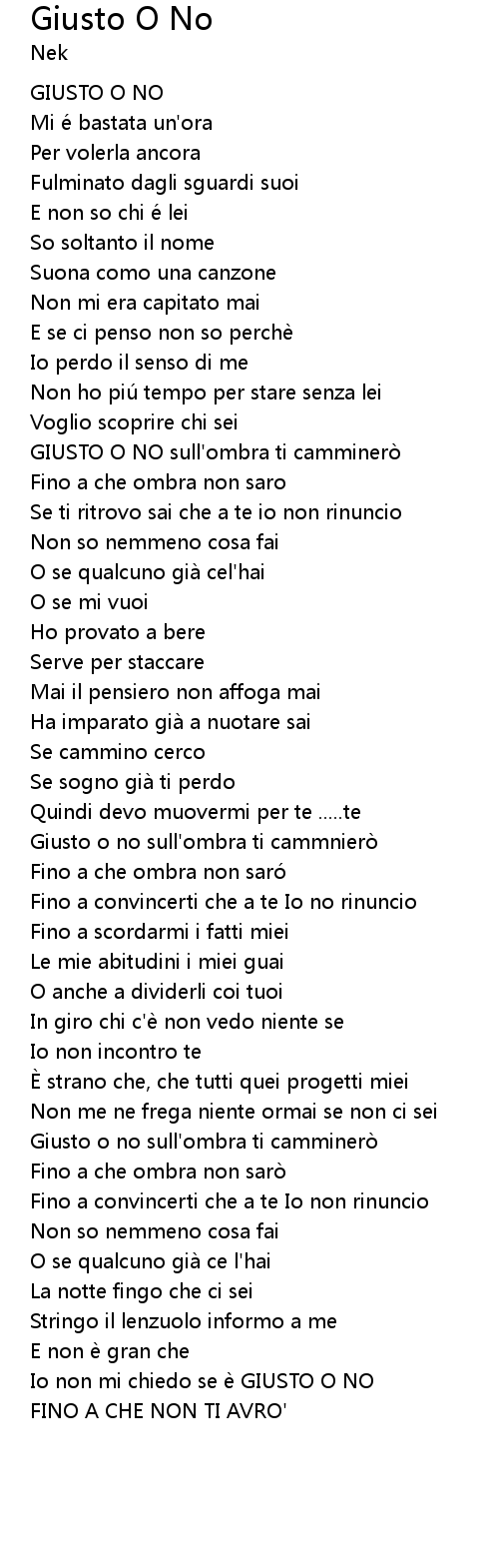 | Giusto o no sull' ombra ti camminerò | |