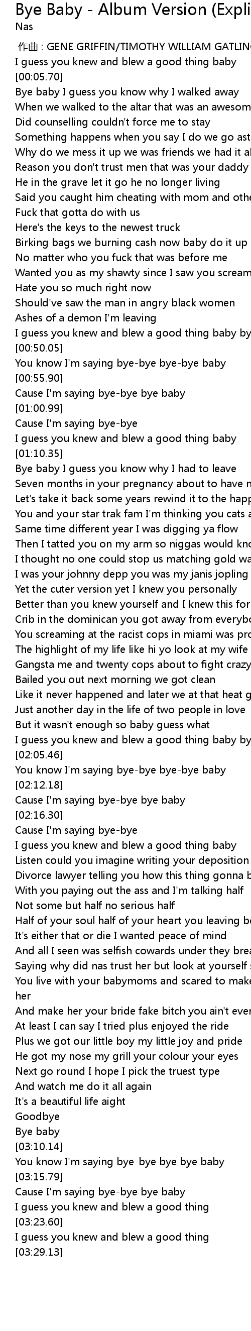 | [02:45.17] | Saying why did nas trust her but look at yourself speak louder bruh |