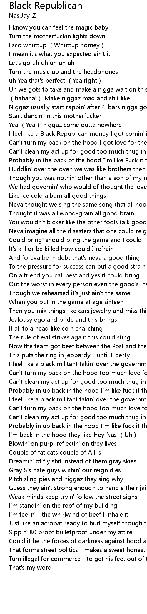 | [00:59.35] | I feel like a Black Republican money I got comin' in |
