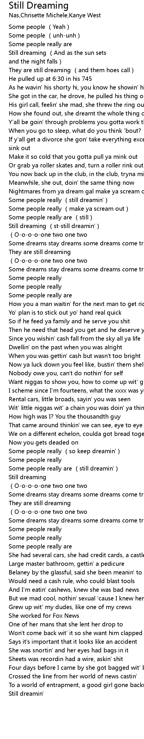 | [00:10.44] | They are still dreaming (and them hoes call) |