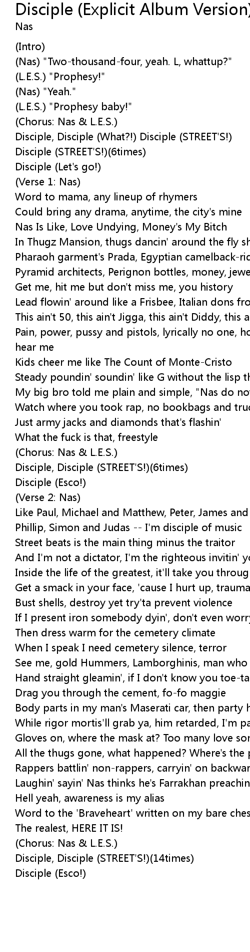 Disciple, Disciple (What?!) Disciple (STREET'S!) |