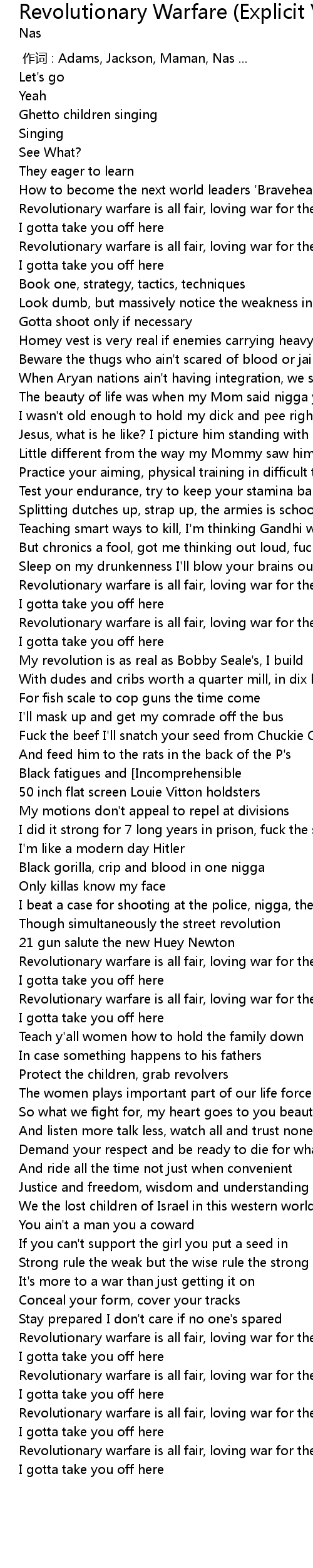 | [02:56.47] | Revolutionary warfare is all fair, loving war for the cause |