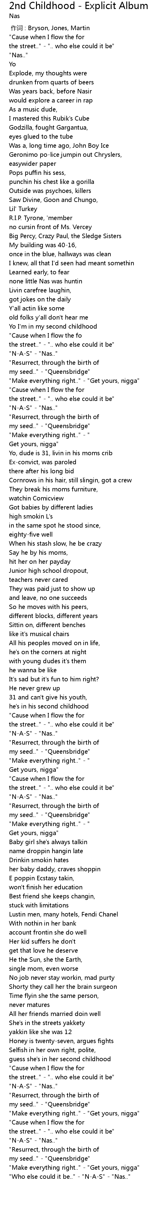 | [02:31.87] | my seed.." - "Queensbridge" |