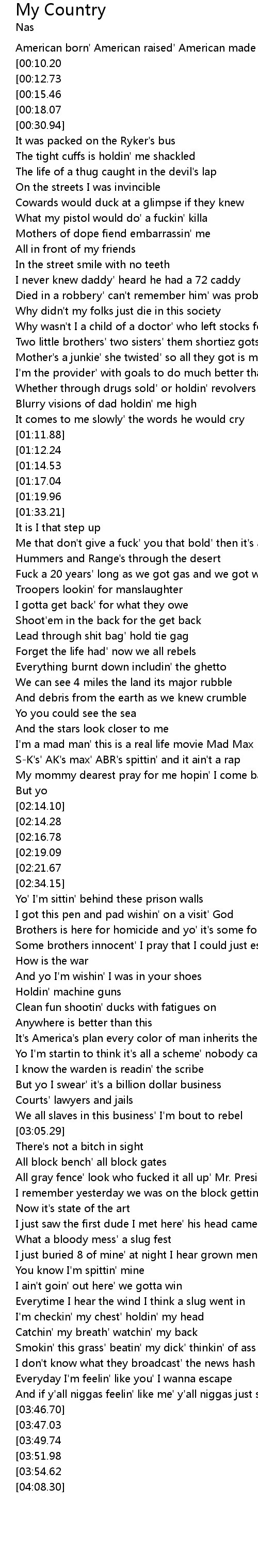 | [03:44.61] | And if y'all niggas feelin' like me' y'all niggas just say |
