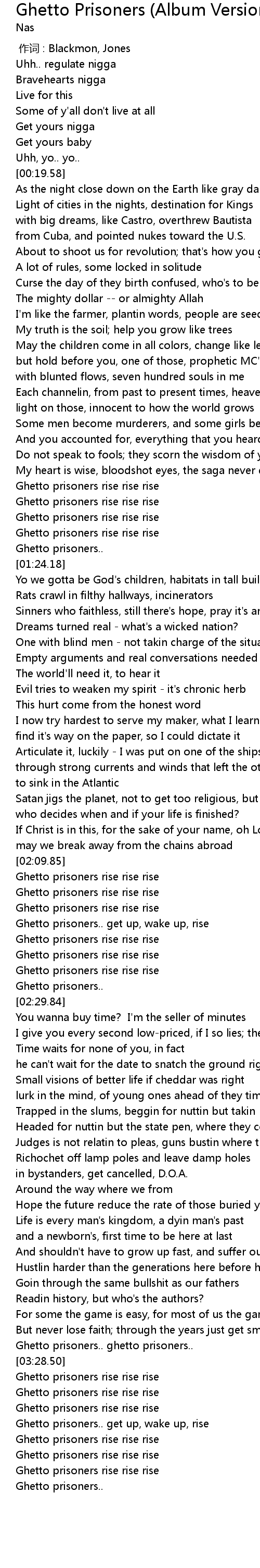 | [03:31.71] | Ghetto prisoners rise rise rise |