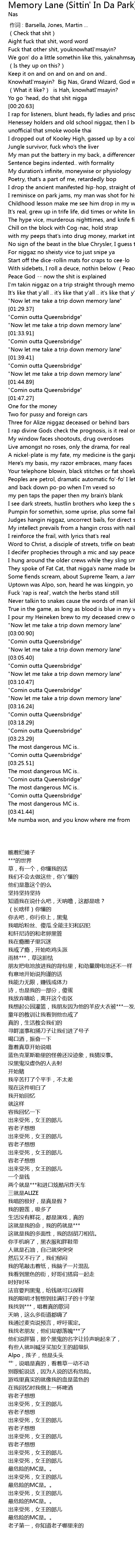 | [01:18.01] | I' m takin niggaz on a trip straight through memory lane |