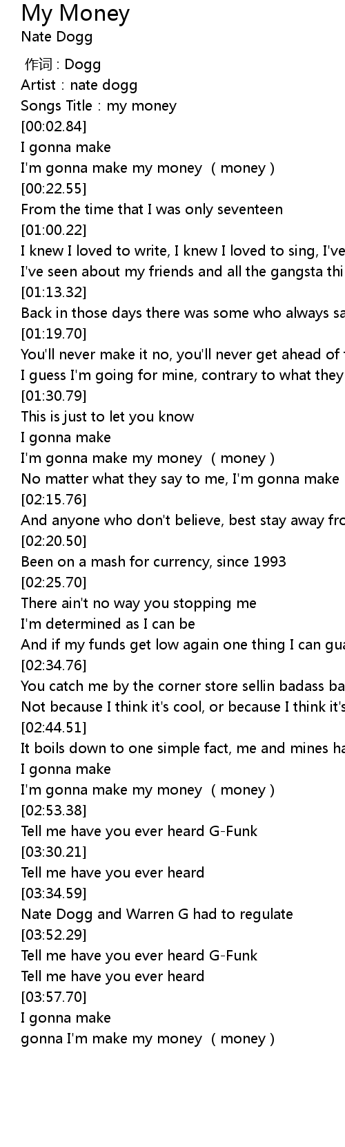 | [01:40.30] | No matter what they say to me, I'm gonna make my money |