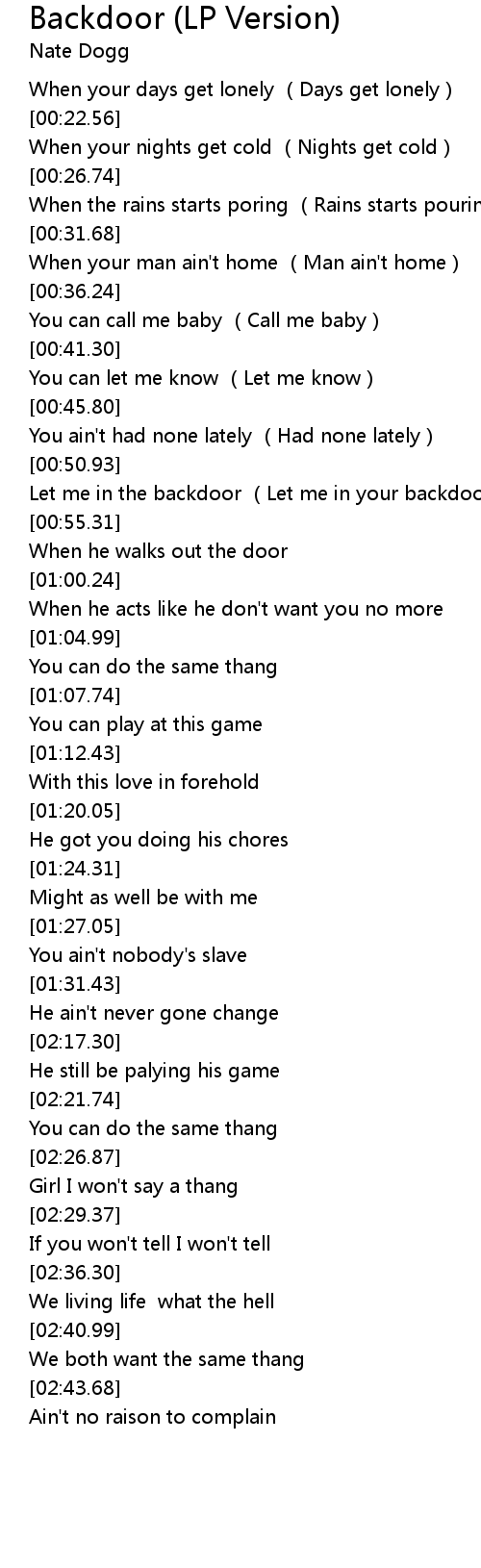 | [00:51.80] | Let me in the backdoor Let me in your backdoor |