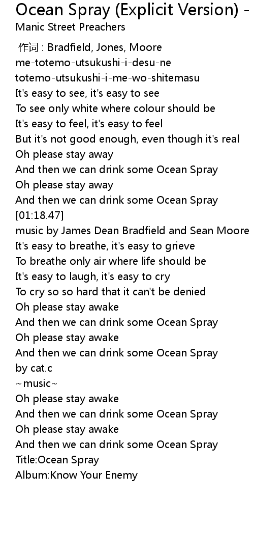 | Song | Ocean Spray (Explicit Version) - Explicit Version |
