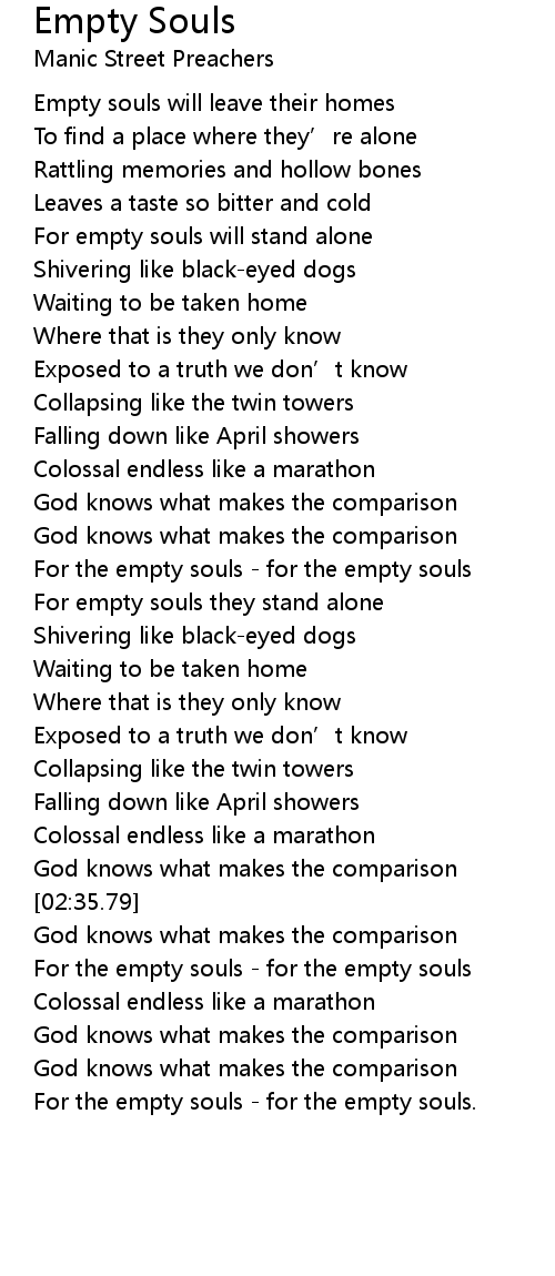 | [01:34.84] | For the empty souls - for the empty souls |