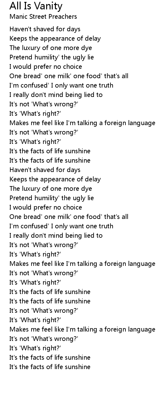 All Is Vanity Lyrics