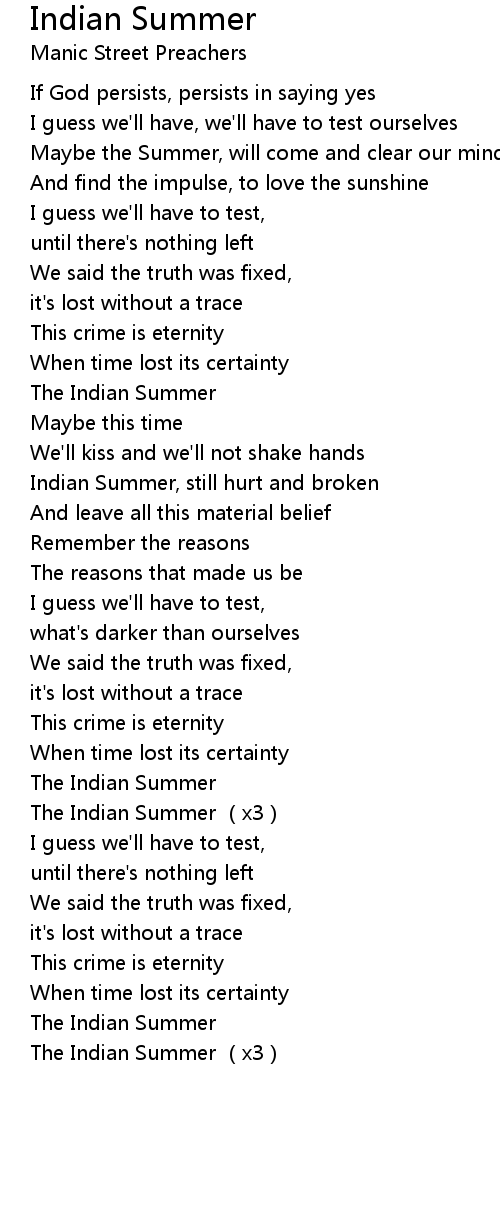 | [01:20.51] | Indian Summer, still hurt and broken |