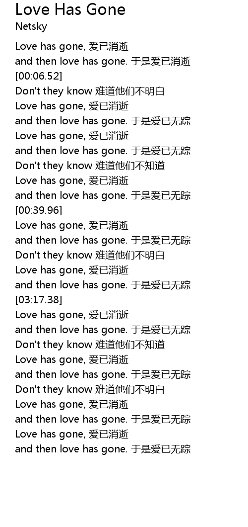 | [00:00.10] | Love has gone, 爱已消逝 |
