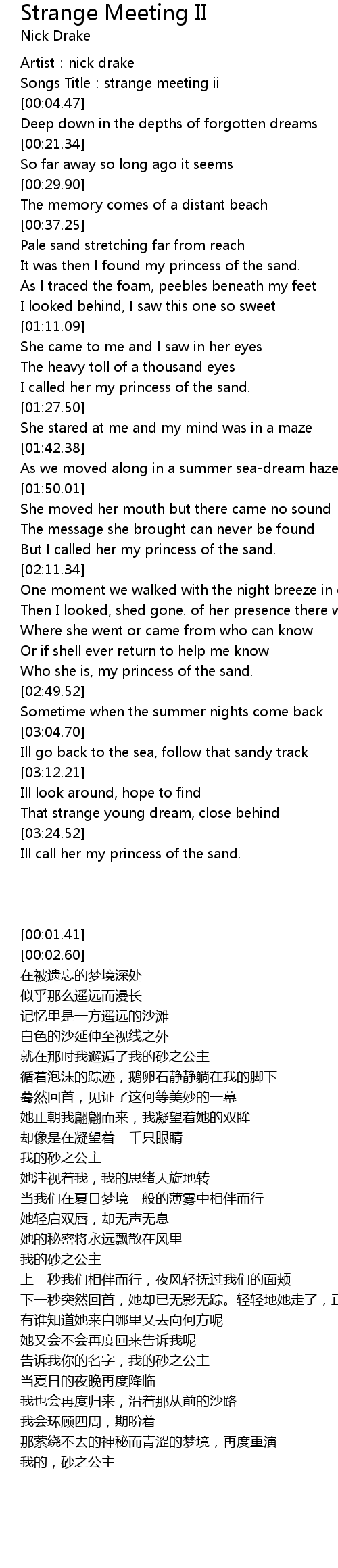 | [00:01.41] | Artist:nick drake |