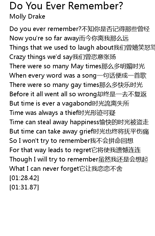 | [00:12.78] | Do you ever remember?不知你是否记得那些曾经 |