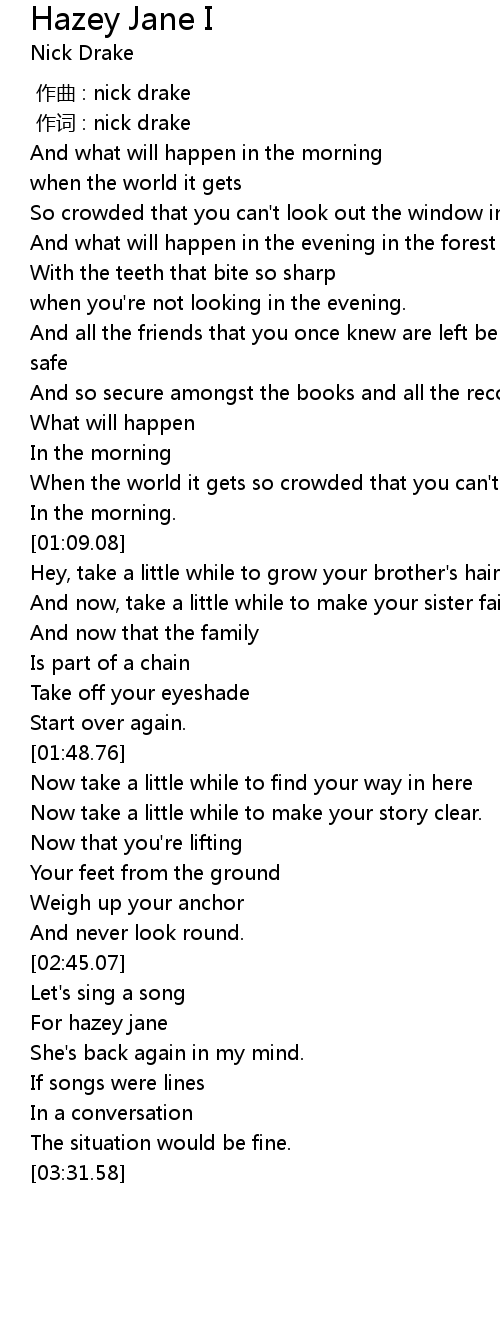 | [01:10.95] | Hey, take a little while to grow your brother's hair |