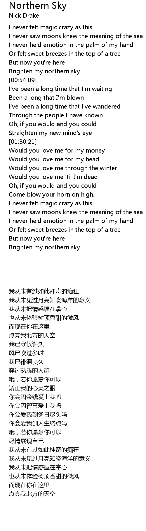 Northern Sky Lyrics